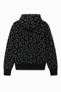Black Leopard Print Zip-Up Knit Hoodie